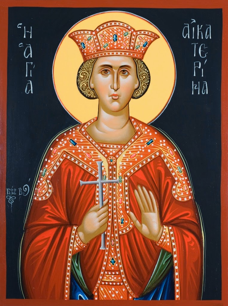 Лик честный Божественно мучениколюбцы воздвигните ныне, почитающе всемудрую Екатерину: сия бо в тризнищи Христа проповеда, и змия попра, риторов разумы укротивши.